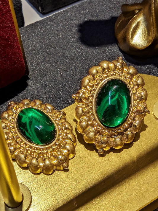 Cloud patterned glass elegant Hong Kong style brass gold-plated earrings, medieval