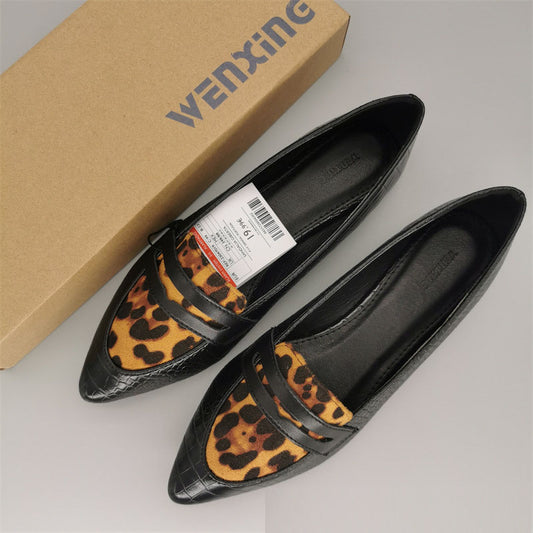 Fashionable New Snakeskin Pattern Loafers Women's Flat Lazy Shoes Leopard